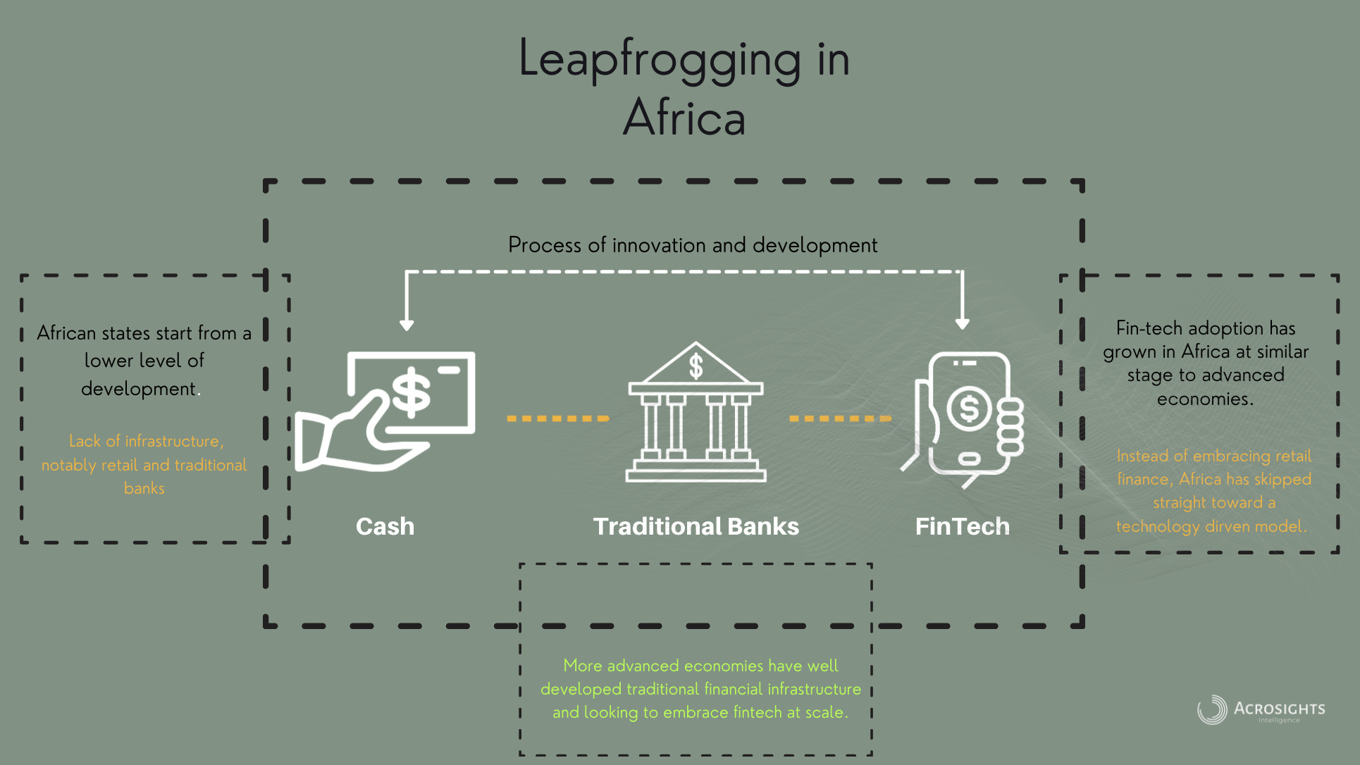 The key to Africa’s ability to leapfrog is its relative lack of legacy institutions and processes - meaning an absence of existing institutional systems to reform and replace to enable advancement. Whilst Africa remains behind most of the world in key development factors it does boast a rapidly growing population base. This places the continent at a marked advantage in embracing innovation at scale across finance, healthcare, and transportation.